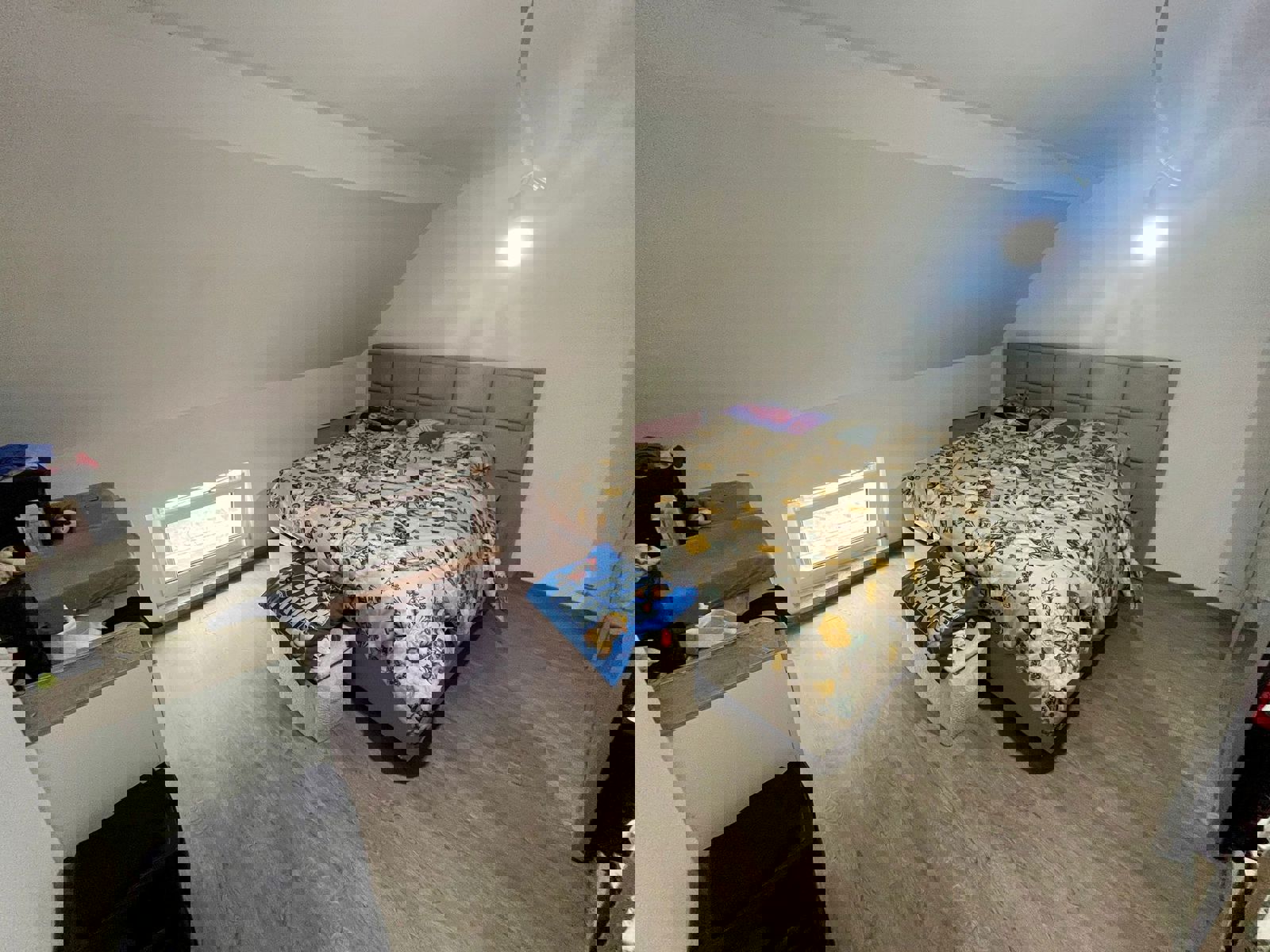 Celle-ci se compose comme suit : salle à manger, salon, cuisine avec coin déjeuner, véranda, WC séparé, garage et remise. Au 1er étage : hall de nuit, 2 chambres, une salle de bains ainsi qu’un bureau/ chambre enfant.